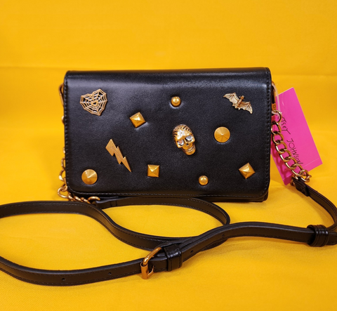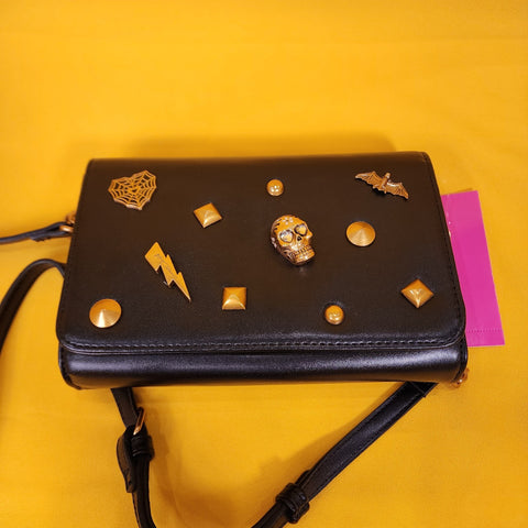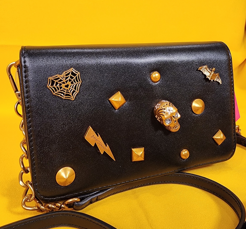 Betsey Johnson Black Gold Skull Bat Halloween Crossbody Bag Clutch Wallet