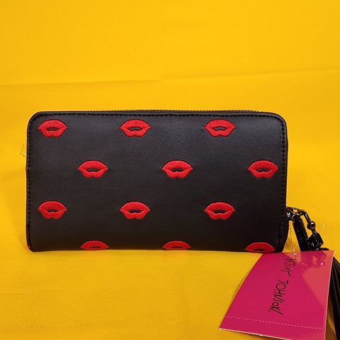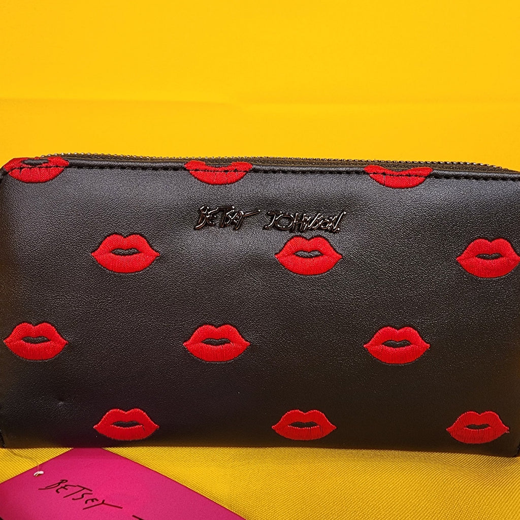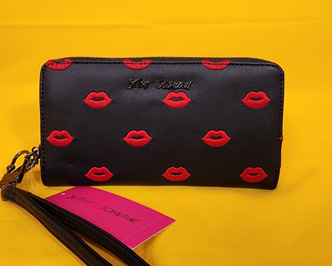 This cool Betsey Kiss Wallet has plenty of space with card holders, a place for your check book, cash etc. Make this the perfect gift for that special someone.. or just spoil yourself!