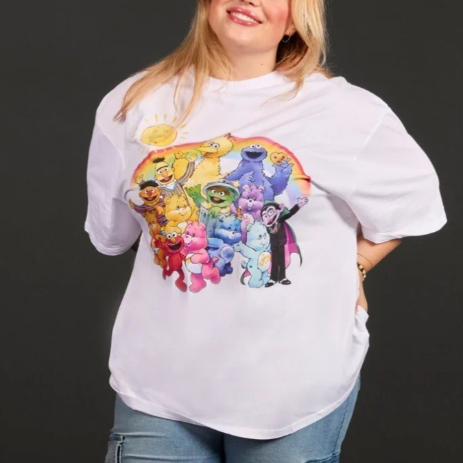 Cakeworthy Care Bears x Sesame Street Drop Sleeve Tee Shirt Unisex XLarge