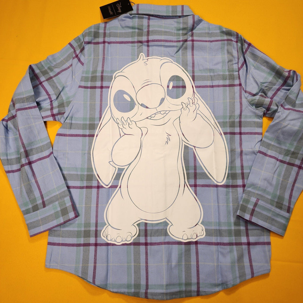 Cakeworthy Disney Lilo and Stitch Blue Flannel Shirt Unisex Medium