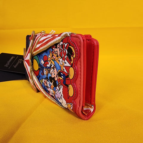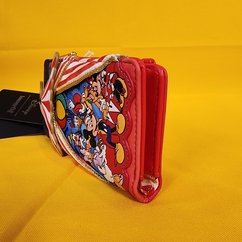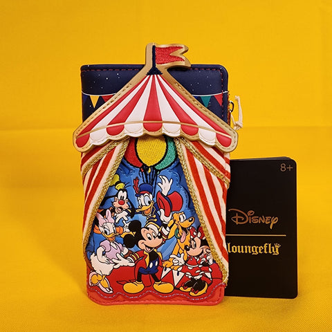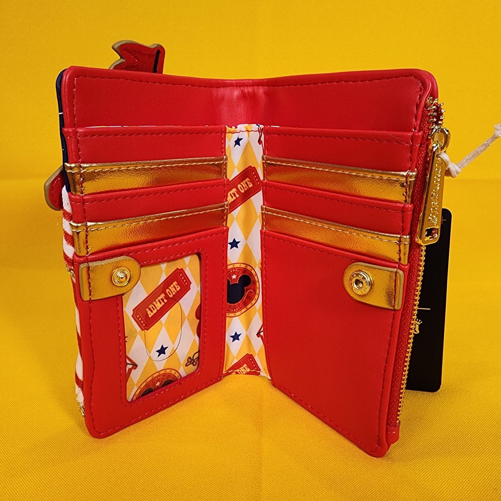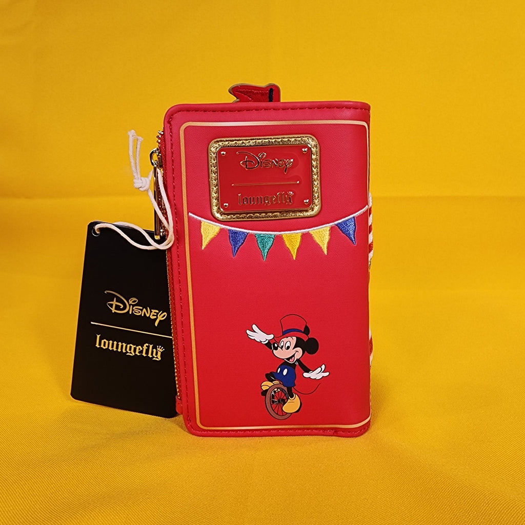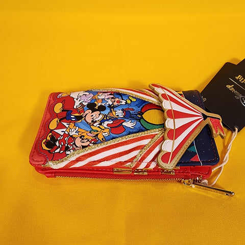 Bring the big top to your accessories with this wallet! Featuring an applique of Mickey and Friends in a tent with rope, cloth, and embroidered details on the front, the back includes the mouse on a unicycle. Make this the perfect gift for that special someone... or just treat yourself!