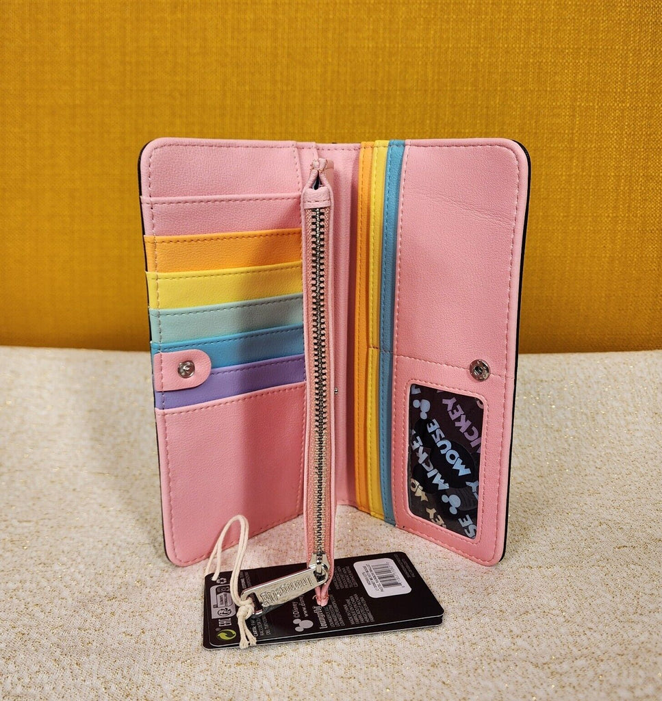 This Pastel Rainbow Mickey Mouse wallet is perfect to hold all your wallet needs. Plenty of room for credit cards, ID, Money, Check Book... etc. This wallet will put a smile on your face every time you pull it out of your favorite bag. Gift this to that special someone... or just spoil yourself!