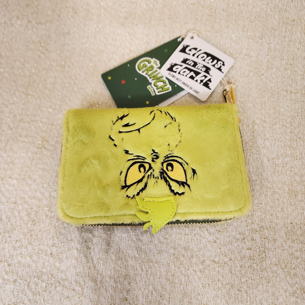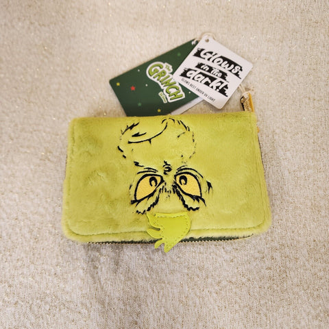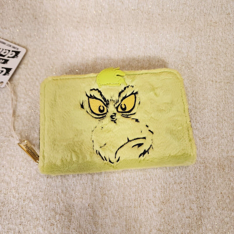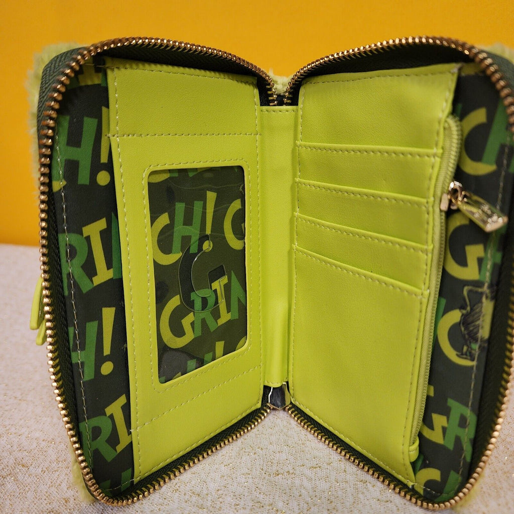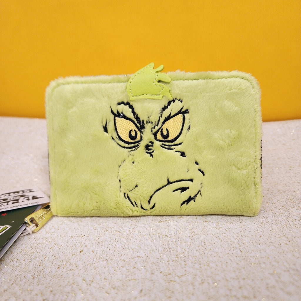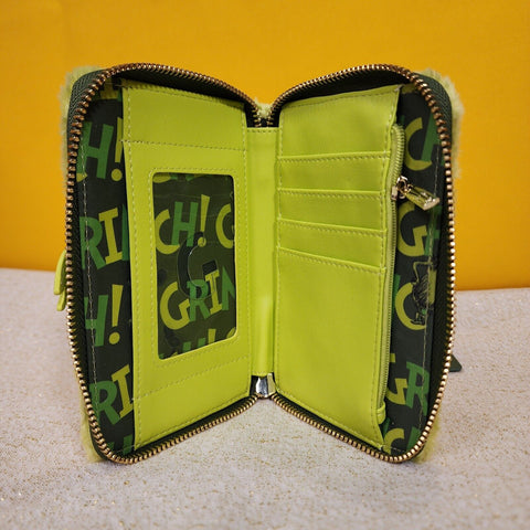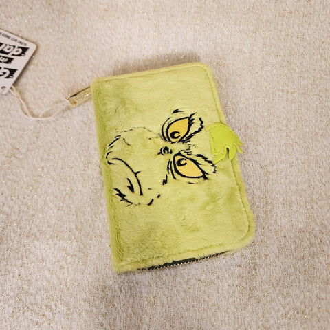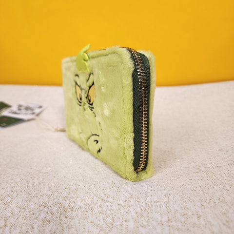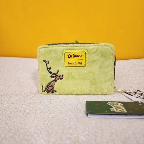 Loungefly Dr. Seuss The Grinch Furry Plush Cosplay Glow Zip Around Wallet NEW