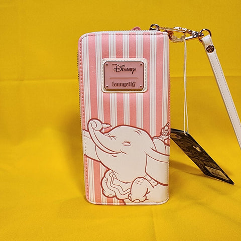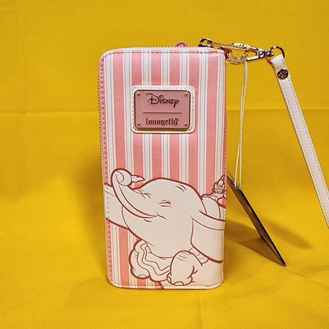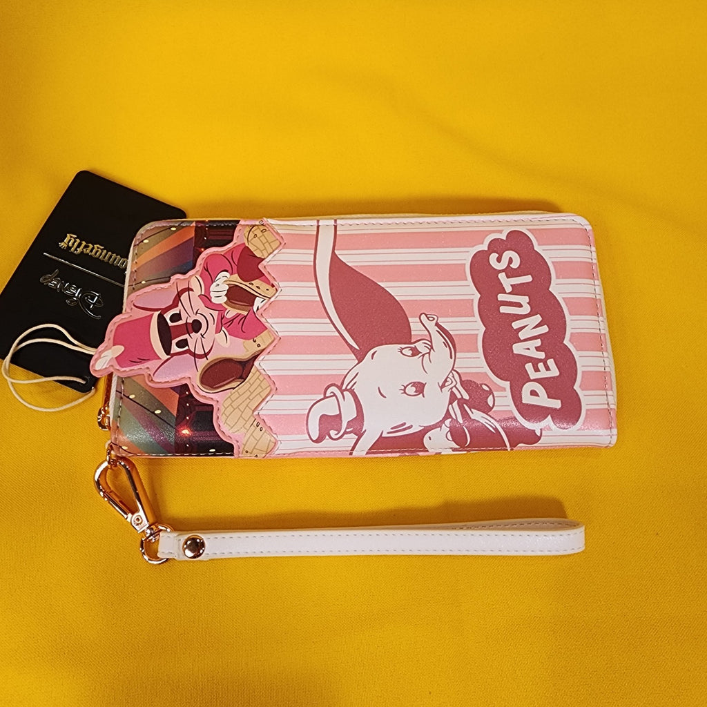 This wristlet wallet has a design that looks like a bag of peanuts you'd get at a circus, featuring an image of Dumbo on the front and back. Inside, there are seven card slots and one clear slot for an ID!