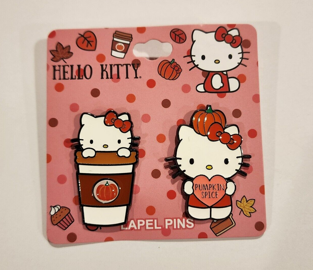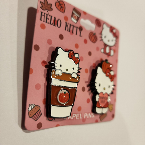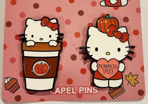 Grab this Cute Hello Kitty Pumpkin Spice pin Set and put it on your hat, bag, jacket... or wherever you please. Gift this to someone special..or add it to your collection!