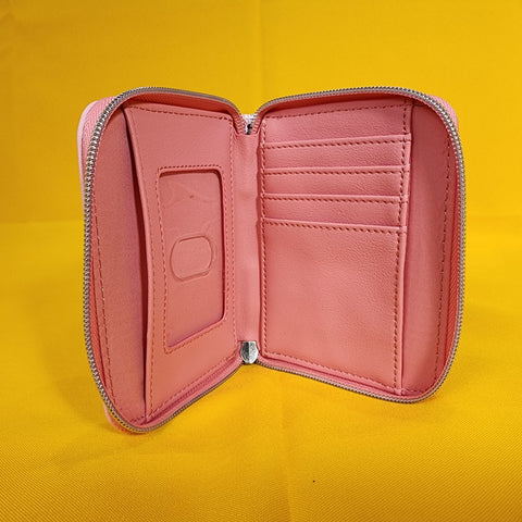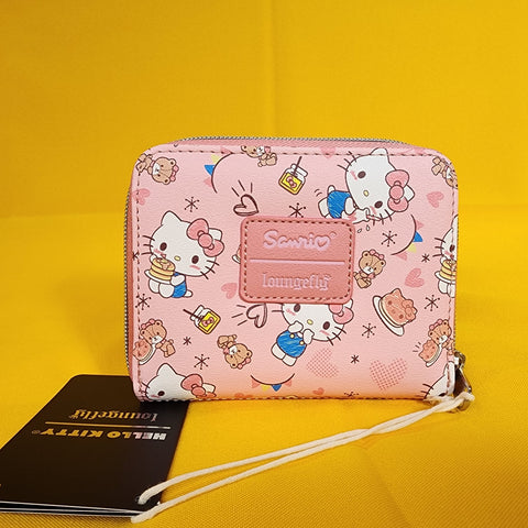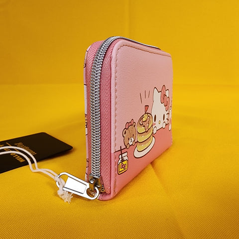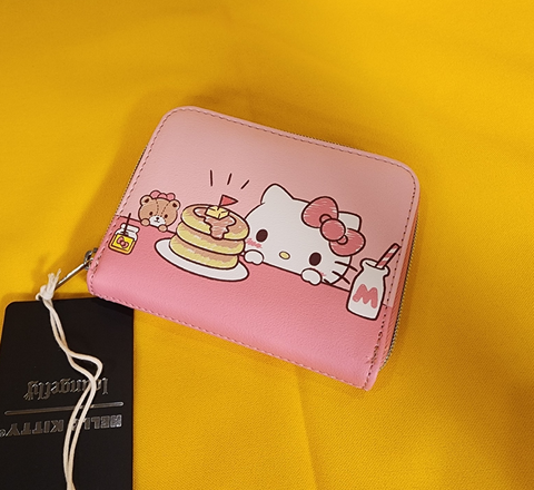 Sweeten up your day with Hello Kitty! This adorable mini zipper wallet features Hello Kitty and Tiny Chum staring at a delicious stack of pancakes. On the back, there's an allover print of Hello Kitty, Tiny Chum, hearts and treats. Comes with 5 card slots and a clear ID display.