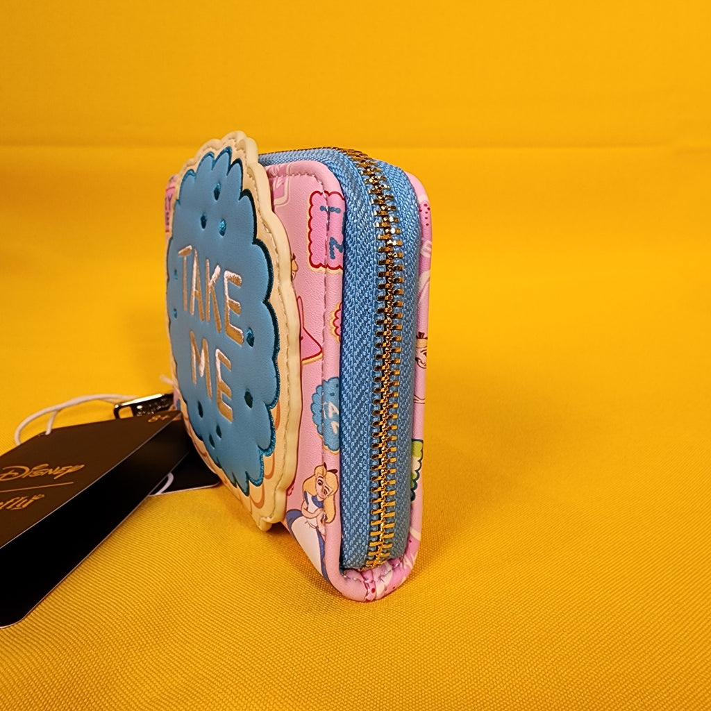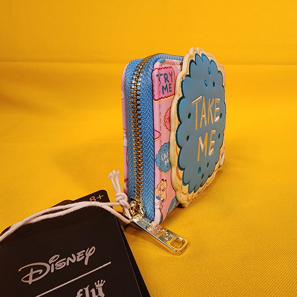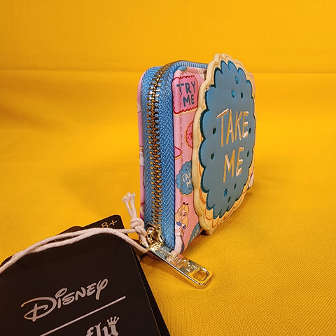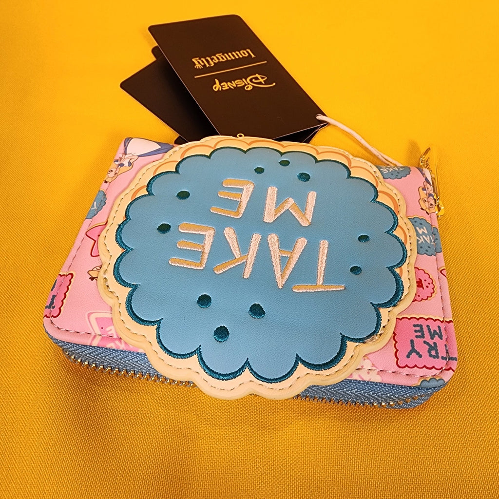 A stylish snack is about to enchant your closet! This Alice in Wonderland zip wallet features an applique of a "Take Me" cookie amid a matching allover print, accented with embroidered details for extra dimension.