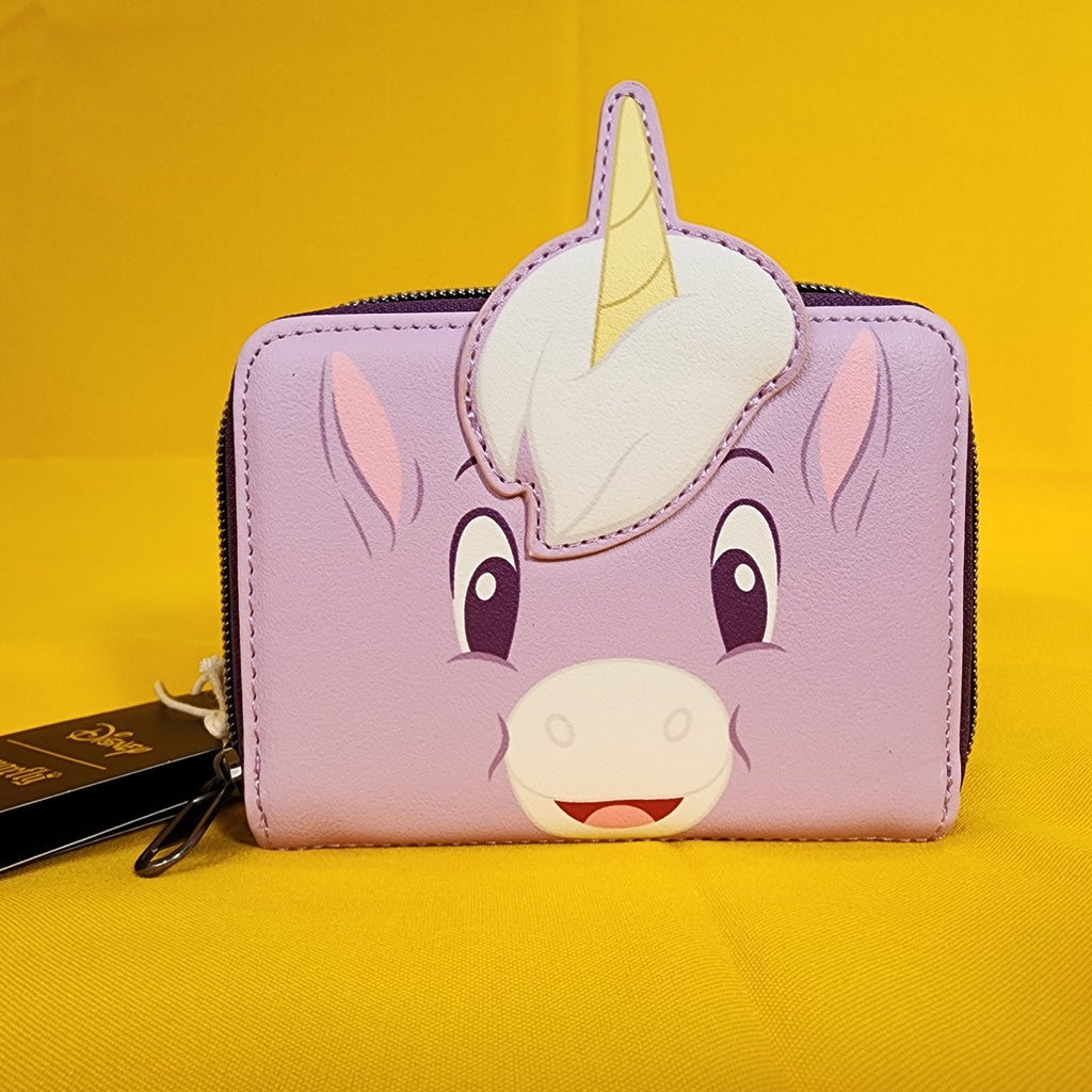 Fly through the tranquil Mount Olympus with your essentials packed into this magical wallet! Inspired by the "Pastoral Symphony" segment of Fantasia, this mini wallet features a figural design of a baby unicorn. Comes with 4 card slots, clear ID slot and a zipper closure.