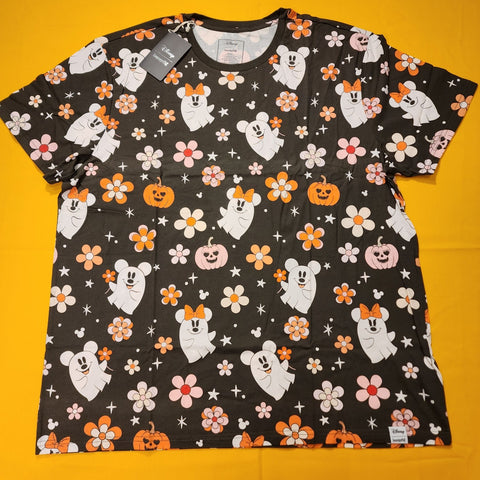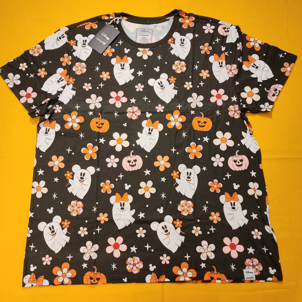 Loungefly Disney Mickey & Minnie Floral Cute Ghost Unisex Tee Halloween Size 2XL