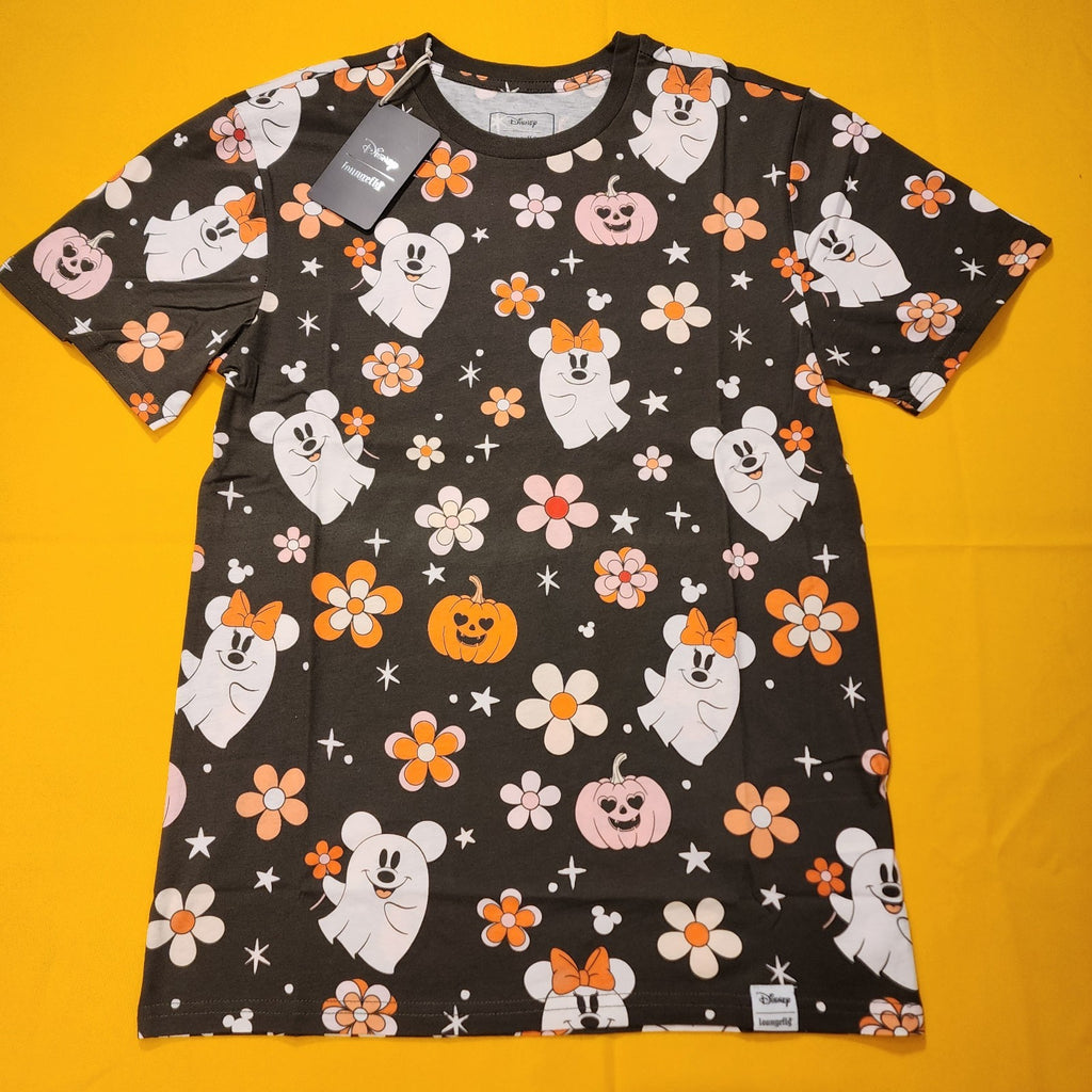 Loungefly Disney Mickey & Minnie Floral Cute Ghost Unisex Tee Halloween Size S