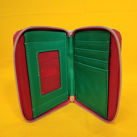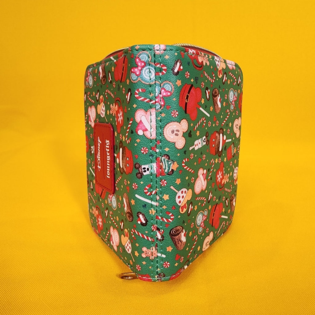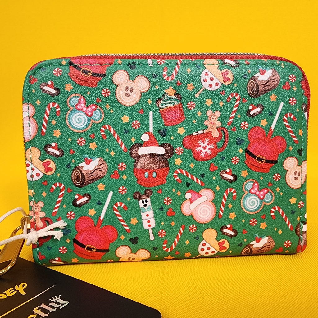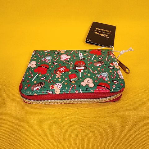 Make your holidays sweeter with Mickey Mouse! This mini wallet features an allover print of Mickey Mouse-shaped treats like gingerbread cookies, cupcakes, lollipops and more. Comes with 4 card slots, clear ID slot and zipper closure.