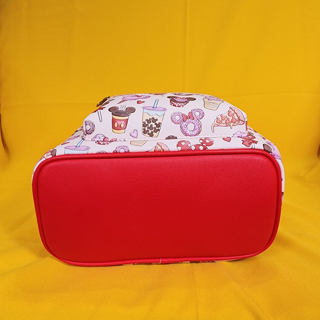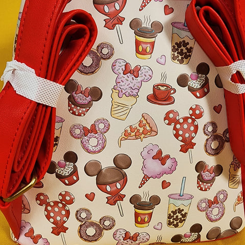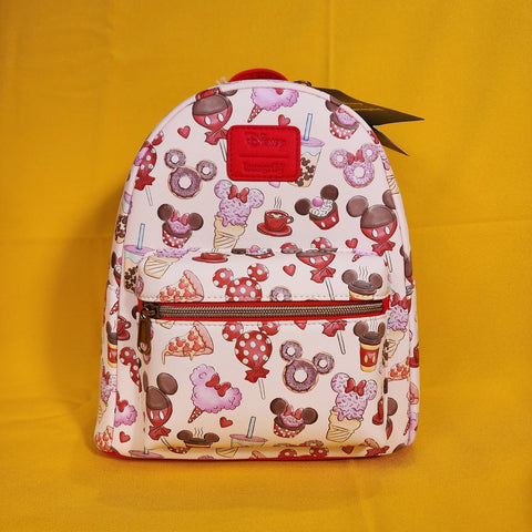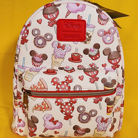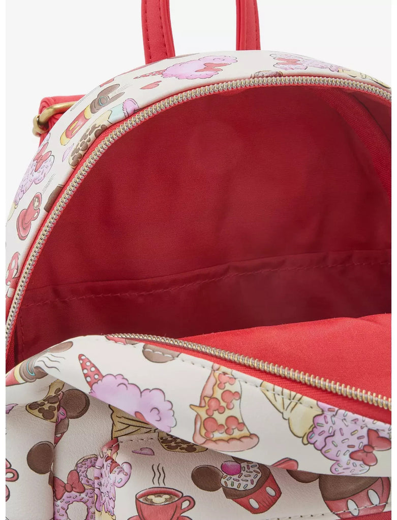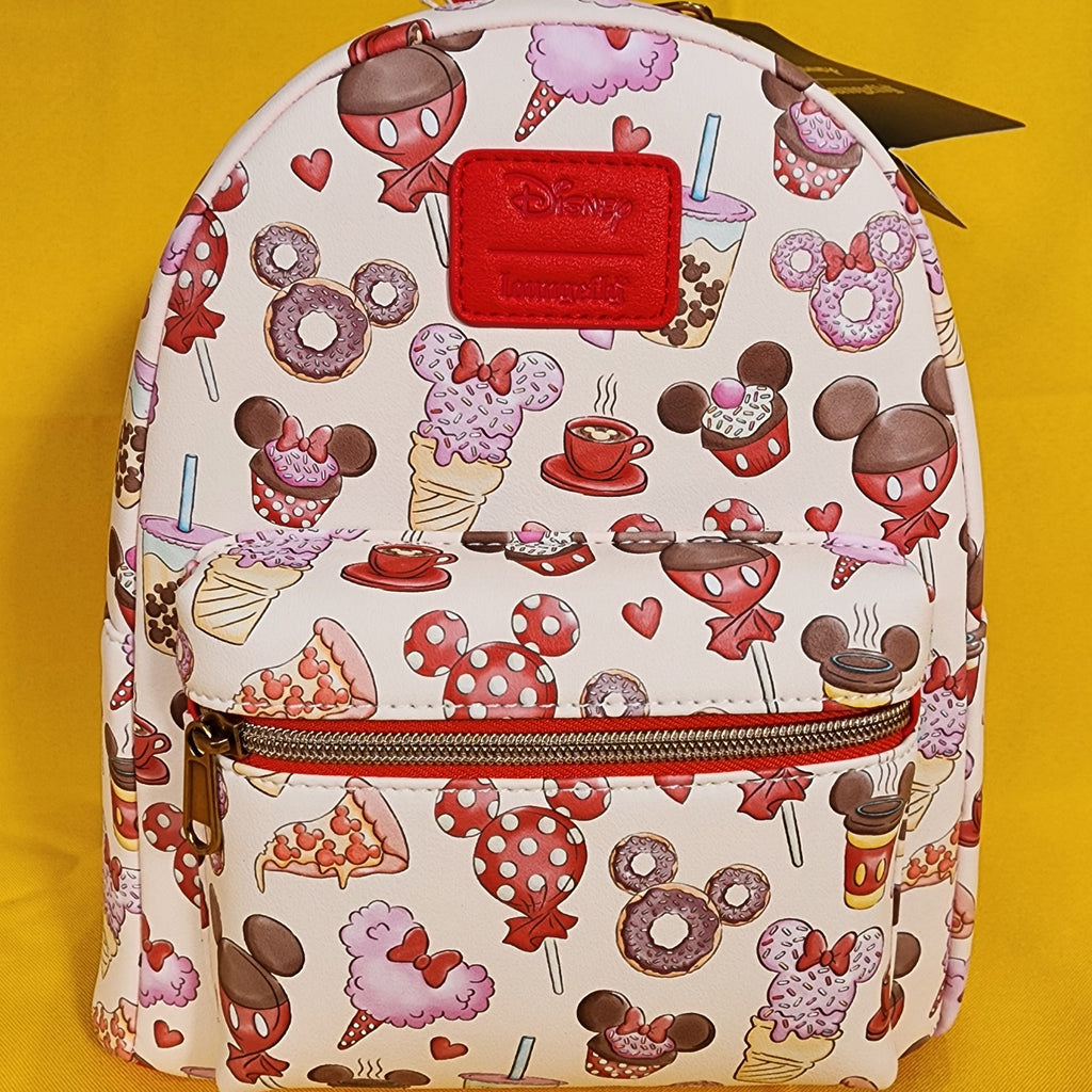 Pack up for a sweet day at the Disney Parks with this mini backpack! Featuring an allover print of treats shaped like Mickey Mouse and Minnie Mouse. Comes with adjustable straps, front zipper pocket and interior drop pocket.