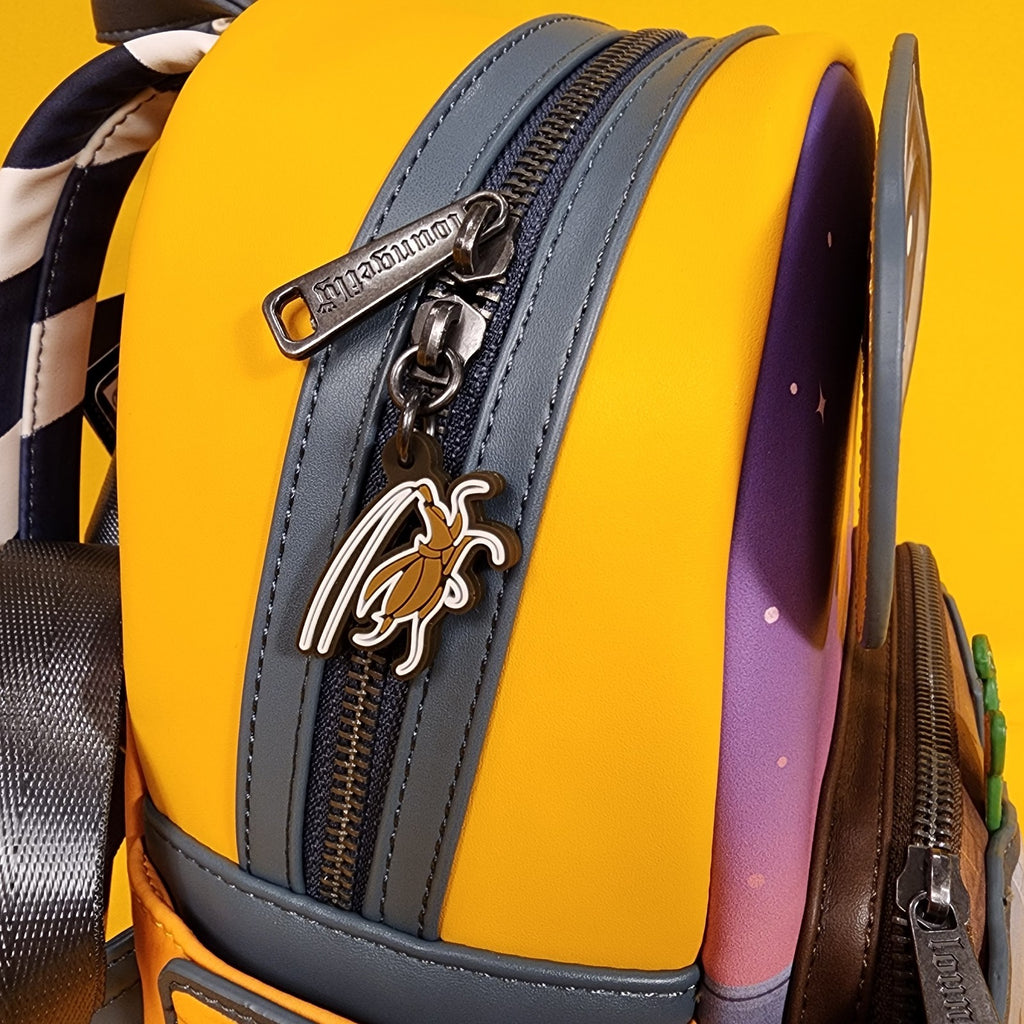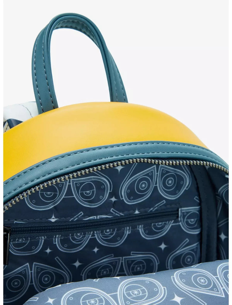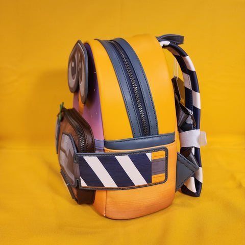 Prepare for your next adventure with this WALL-E mini backpack! Featuring applique robot arms grasping a trash block on the front pocket, the front of also includes moveable eyes. With a roach zipper pull and striped adjustable straps, this bag is perfect for fans of the film.