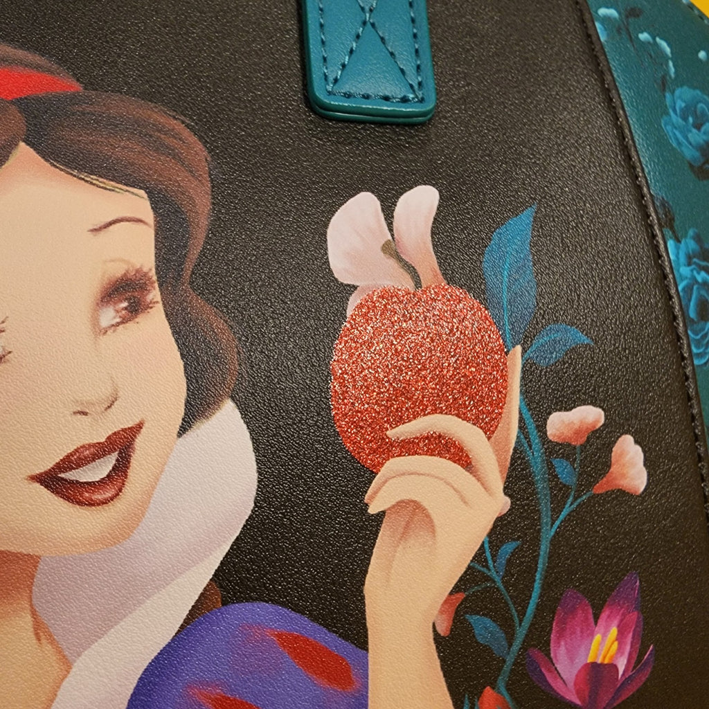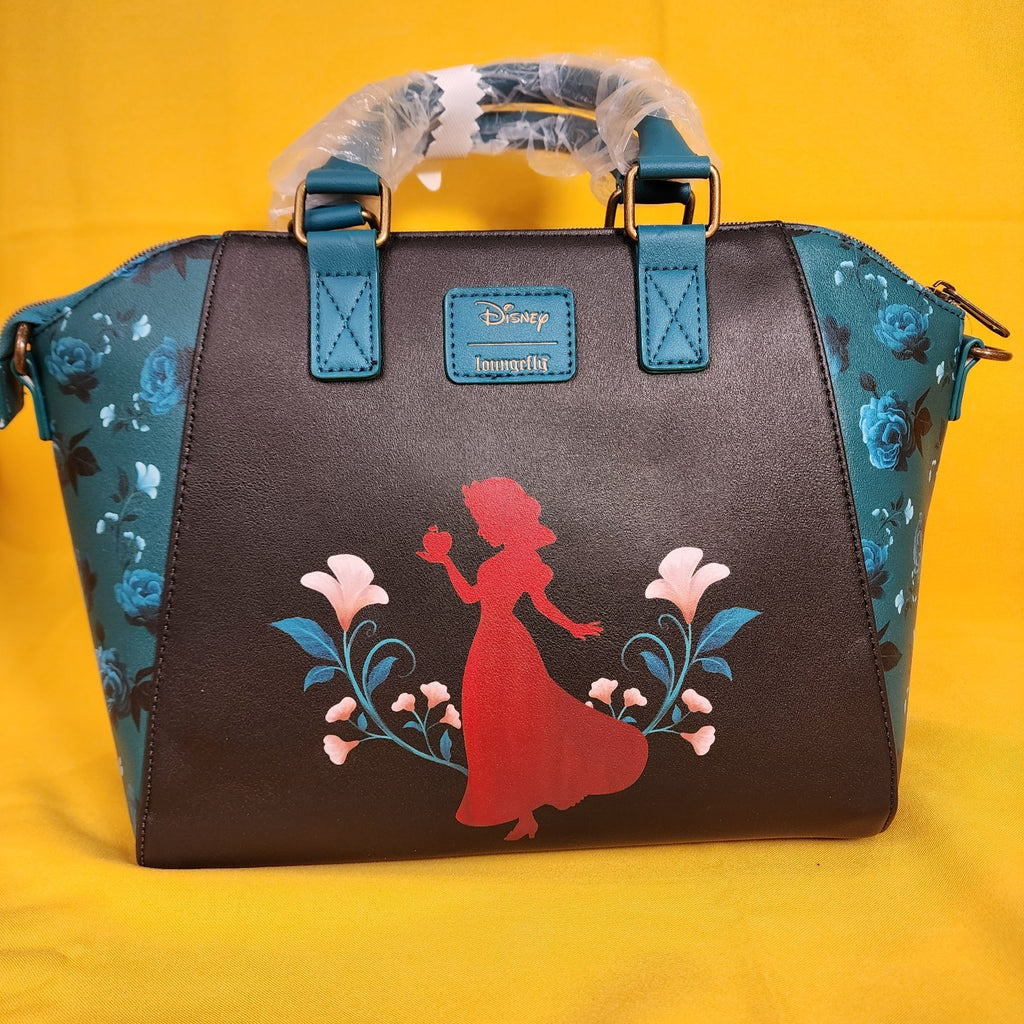 Pack all of your apples (non-poisonous, of course) in this Snow White and the Seven Dwarfs satchel bag! Featuring Snow White holding an apple, surrounded by floral detailing.