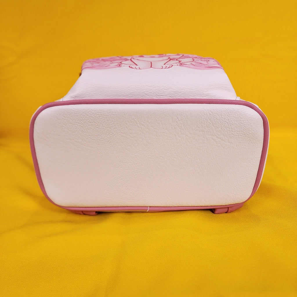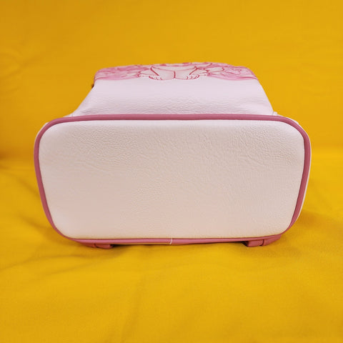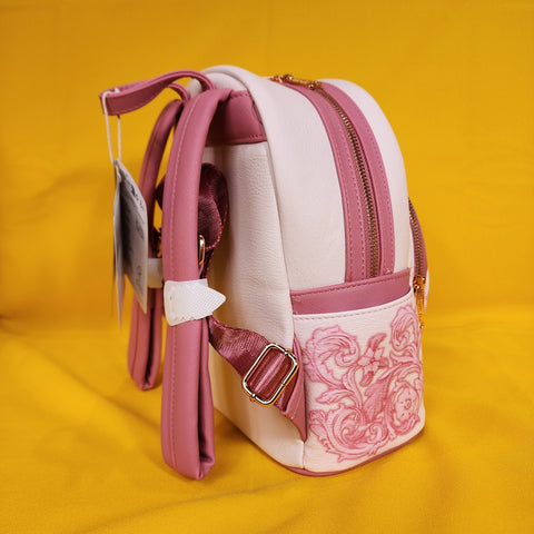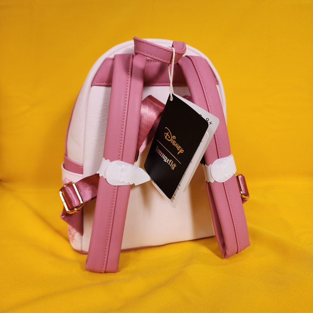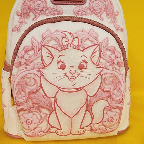 With embossed details, this mini backpack features Marie amid pink flowers.