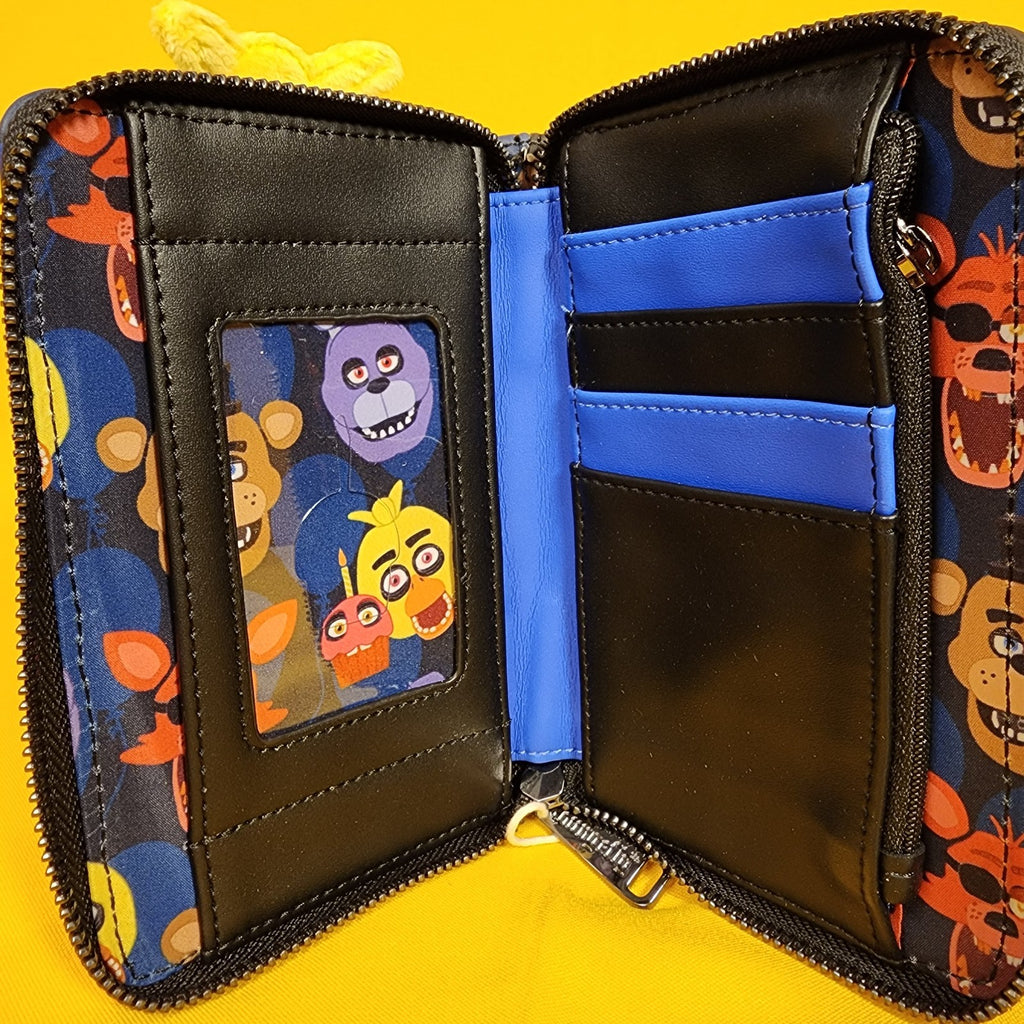 Switch up her expression by moving her eyebrows to make her look more friendly or more sinister. The back of the wallet features an image of Chica's cupcake surrounded by balloons.