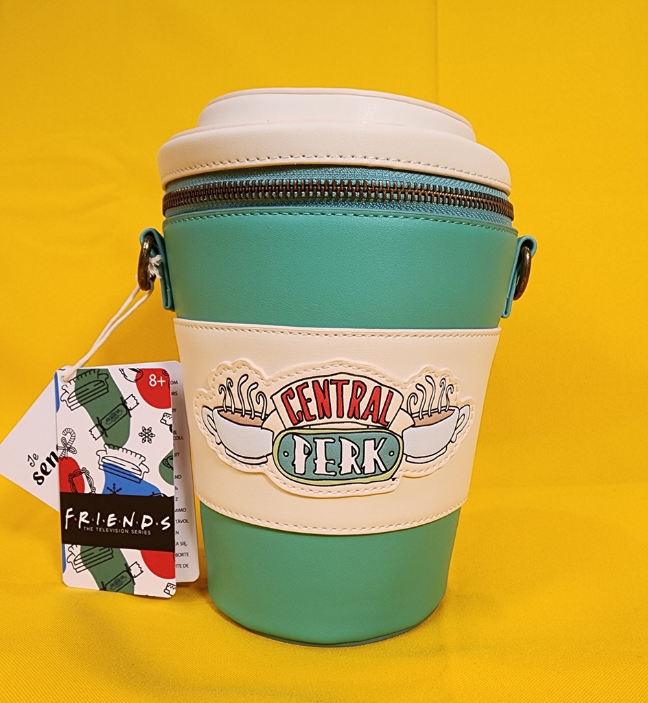 Perk up your day! This Central Perk crossbody bag is a fashionably fun way to take a favorite fandom on the go. It’s even coffee-scented! The fully figural bag, resembling a to-go cup, features the Central Perk applique logo on the front. Pack your daily essentials, grab your bestie, and toast to new adventures.