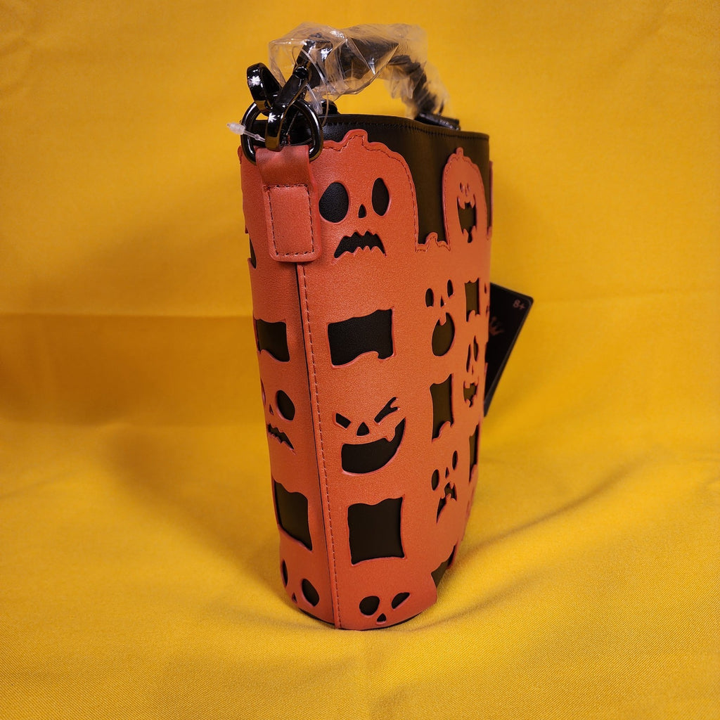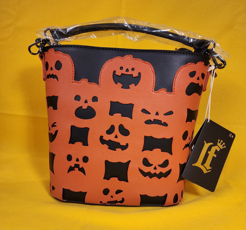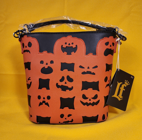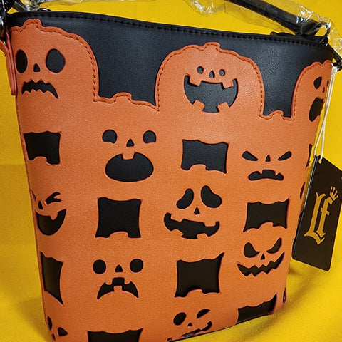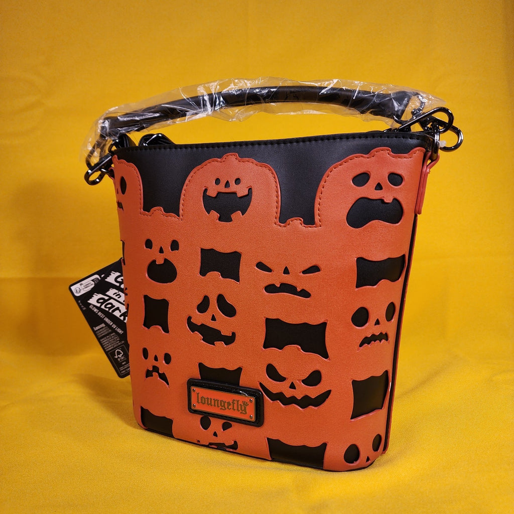 All over the bag, you'll find various jack-o'-lanterns with different facial expressions. They all glow in the dark against the black background! This bag is a really fun piece you can style with anything in your fall wardrobe!