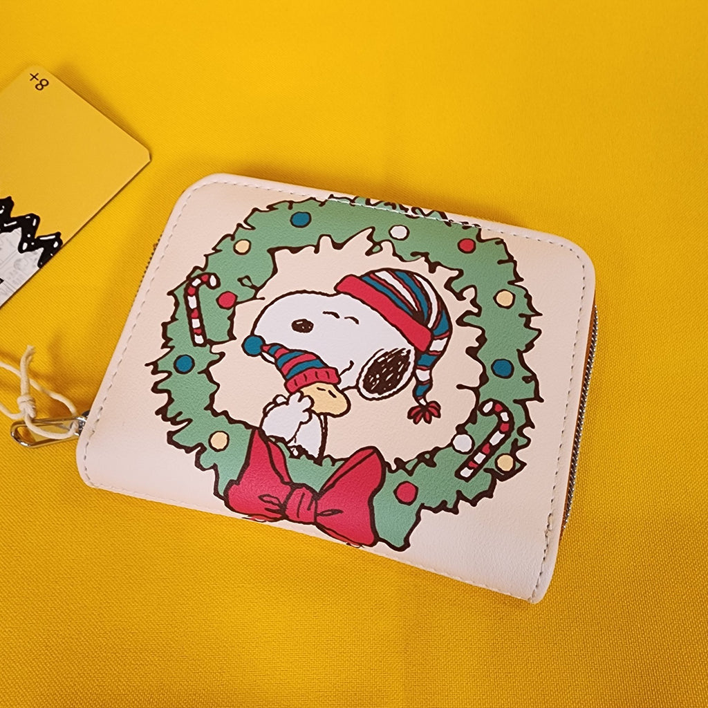 Loungefly Peanuts Snoopy Woodstock Christmas Wreath Zip Around Wallet