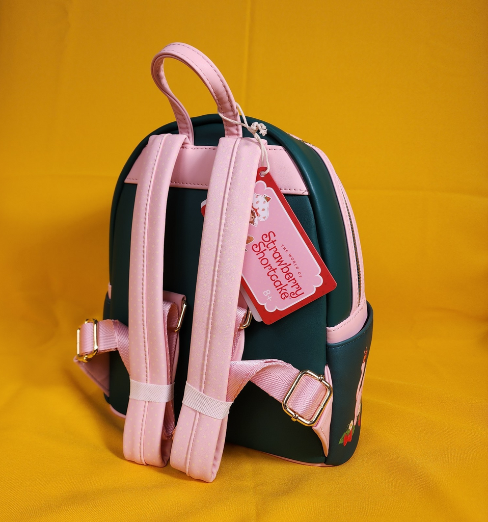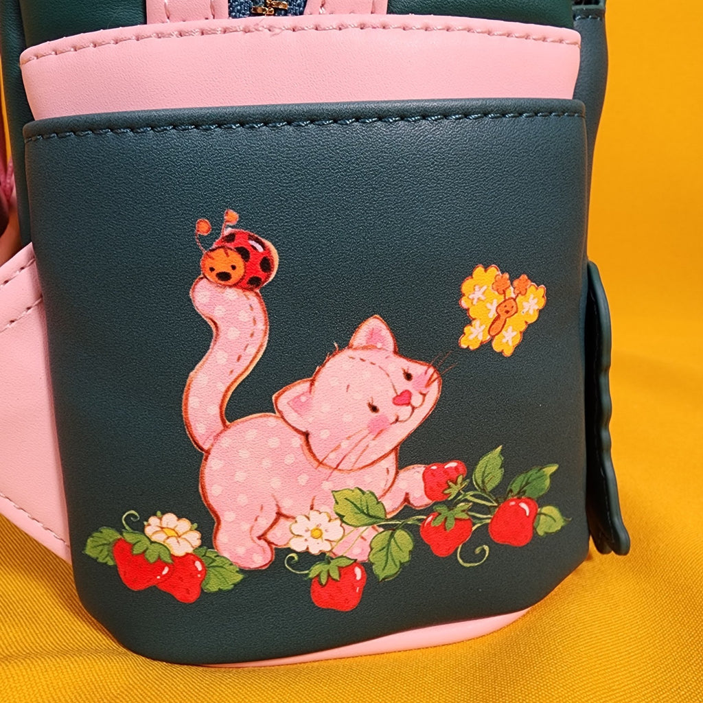 With an applique of Strawberry Shortcake and Custard on the front pocket, this mini backpack is decorated with embroidered strawberries.