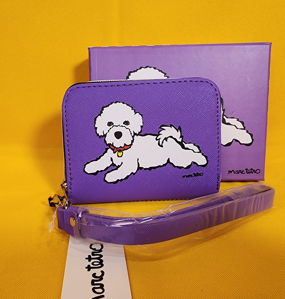 Marc Tetro Bichon Frise Purple Dog Wallet Cardholder Wristlet NEW