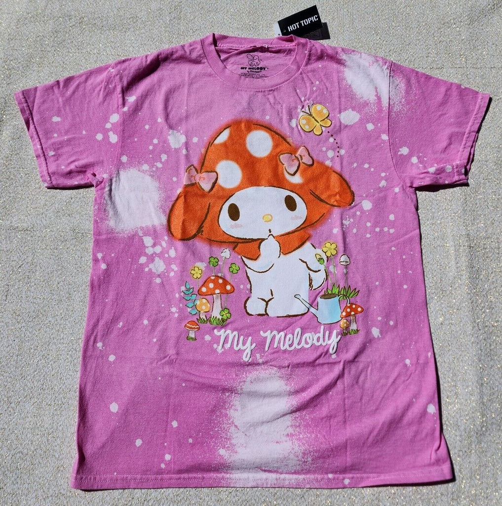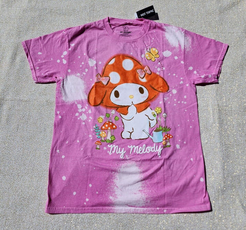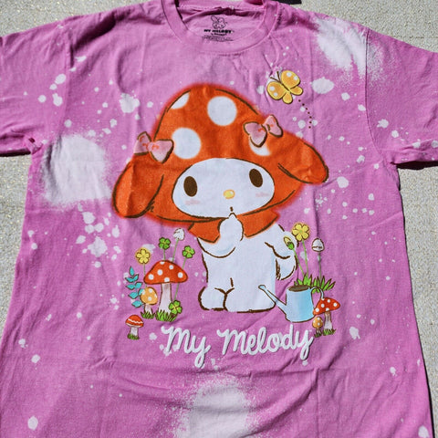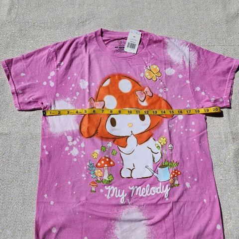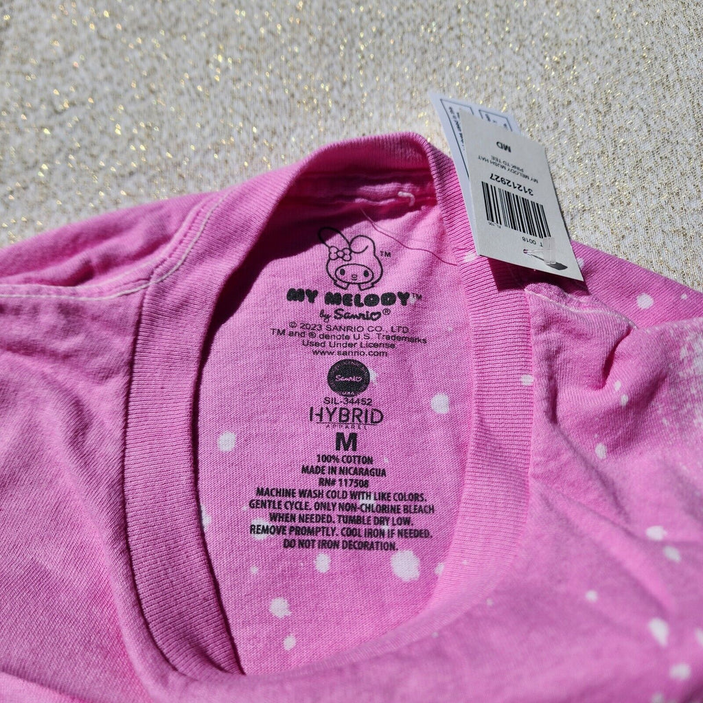 My Melody Pink Splatter Tie Dye Mushroom Hat Womens Boy Friend Fit T Shirt Medium
